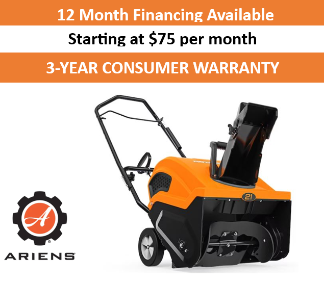 The Ariens Path Pro single-stage snow blower features a 21” clearing width and guaranteed first-time start in the cold. Strong 208cc Ariens AX engine to move up to 9” of snow and blow snow up to 35' away. Folding handlebars for easy storage. Tall housing height.